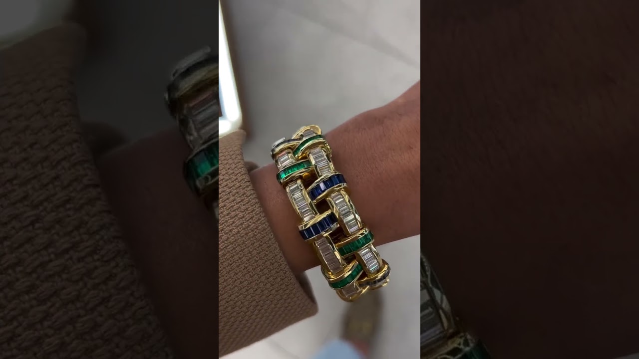 12.30CT Sapphire And Emerald Wide 18 Karat Bracelet