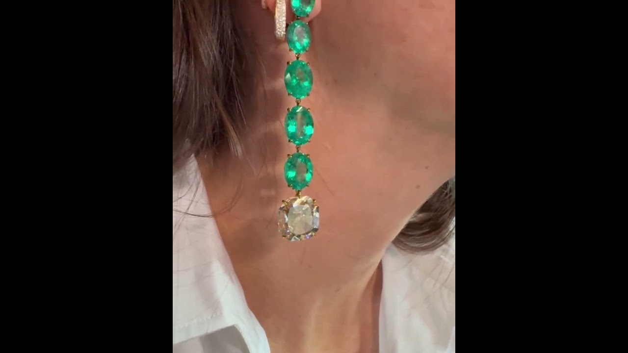 15ctw Cushion Cut White Sapphire & Oval Cut Emerald Chic Drop Earrings