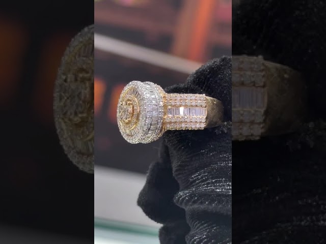 2.35ct Round Cut White Sapphire Center Stone With Baguette Cut Side Stones Two-Tone Handmade Men's Ring