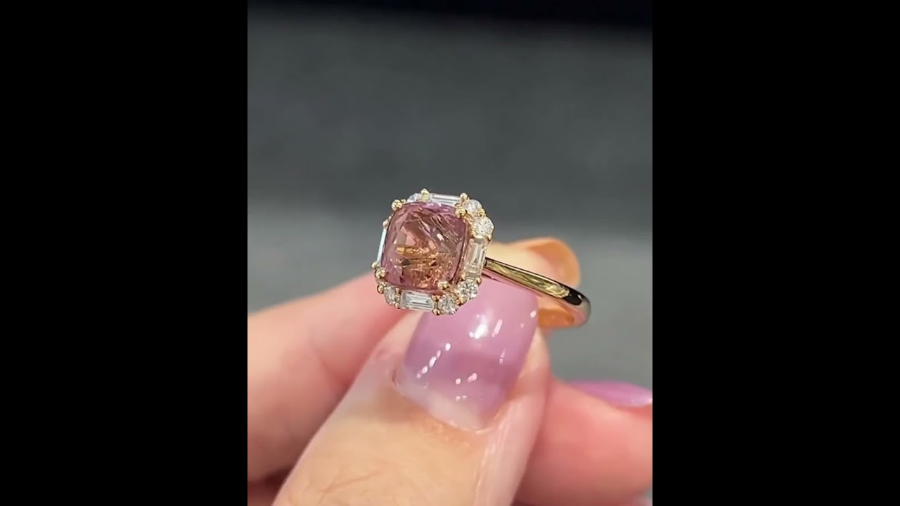 2.96ct Cushion Cut Natural Pink Tourmaline Diamond In 18K Yellow Gold