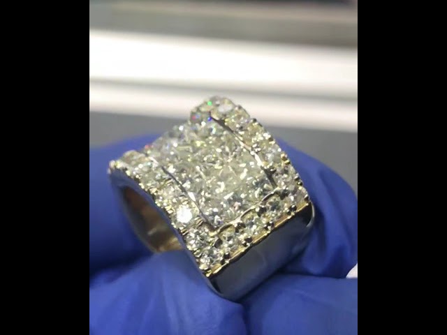 4.5ctw Princess Cut White Sapphire Invisible Set Handmade Men's Ring