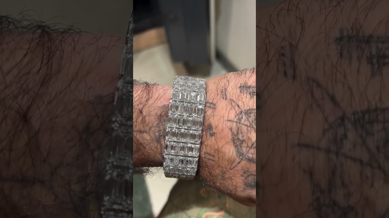 50ct Emerald Cut Diamond Sterling Silver Handmade Bracelet