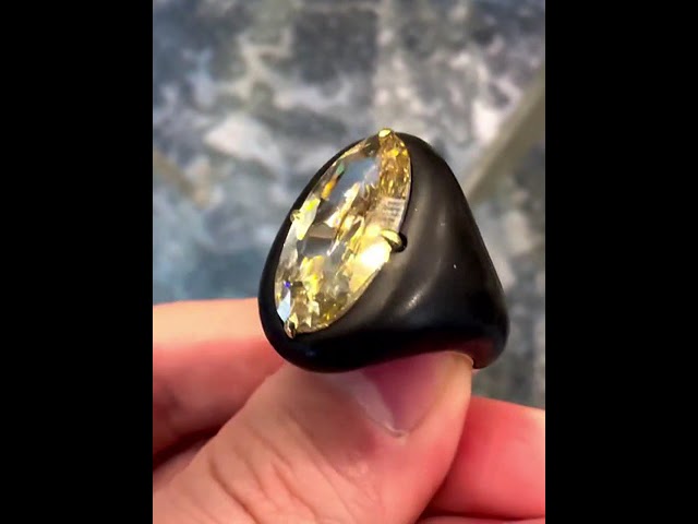 5ct Oval Cut Yellow Sapphire Strong Contrast Yellow Gold Handmade Men's Ring