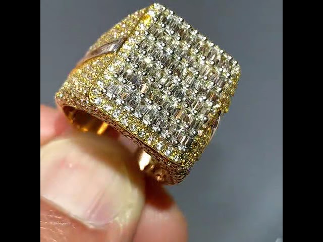 6.2ctw Baguette Cut White Sapphire Yellow Gold Pave Set Handmade Men's Ring