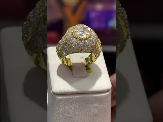 6.38ctw Baguette & Round Cut White Sapphire Yellow Gold Handmade Classic Men's Ring