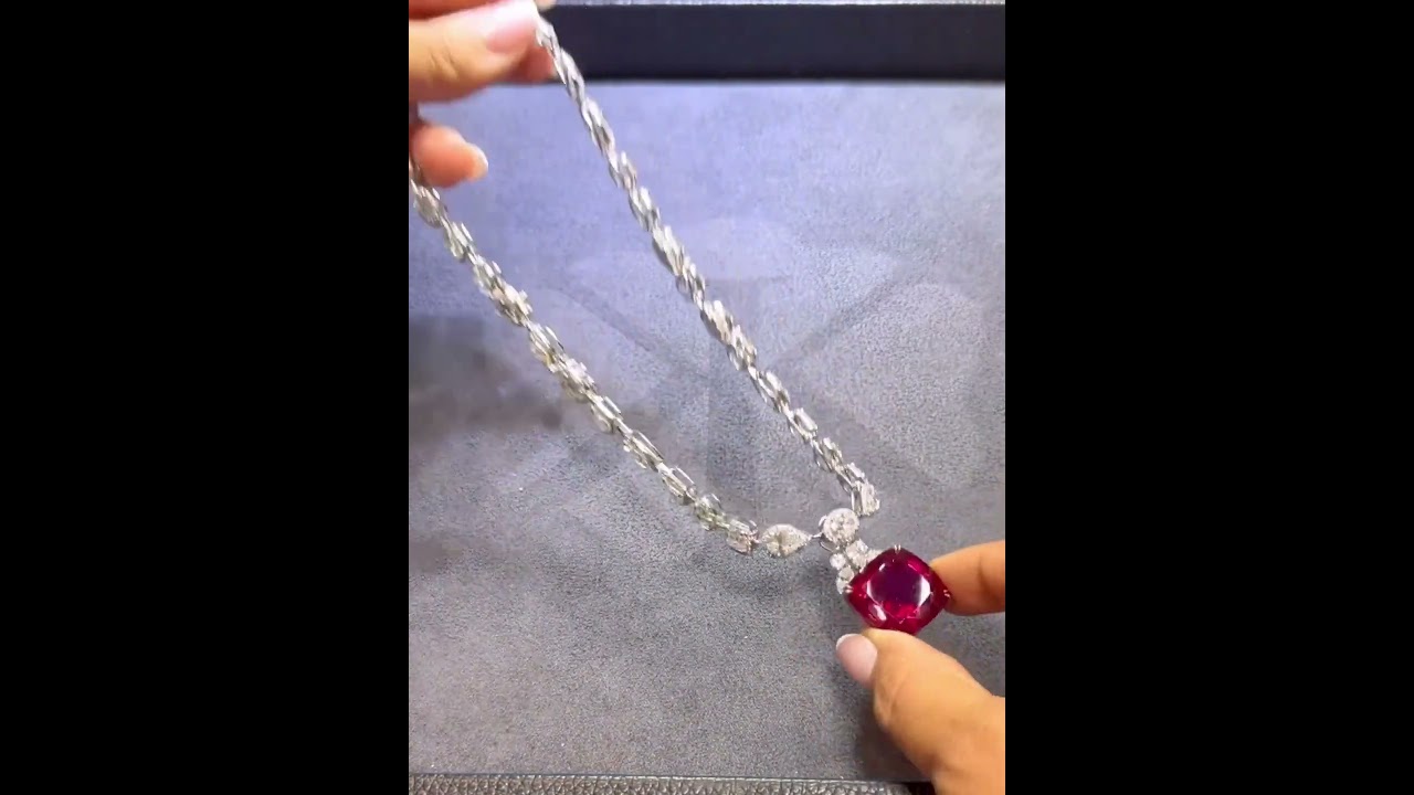 15ct Cushion Cut Ruby & Multi-cut White Sapphire Halo Paved Handmade Pendant Necklace