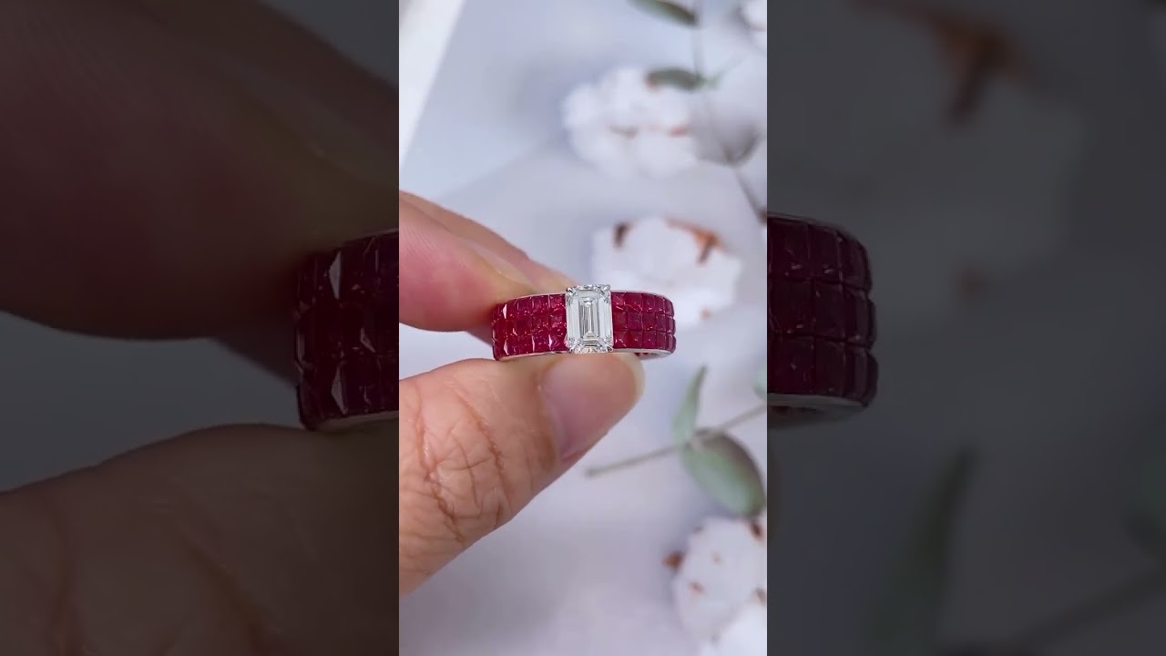 4.0CT Ruby And Emerald Cut Diamond Cocktail Ring