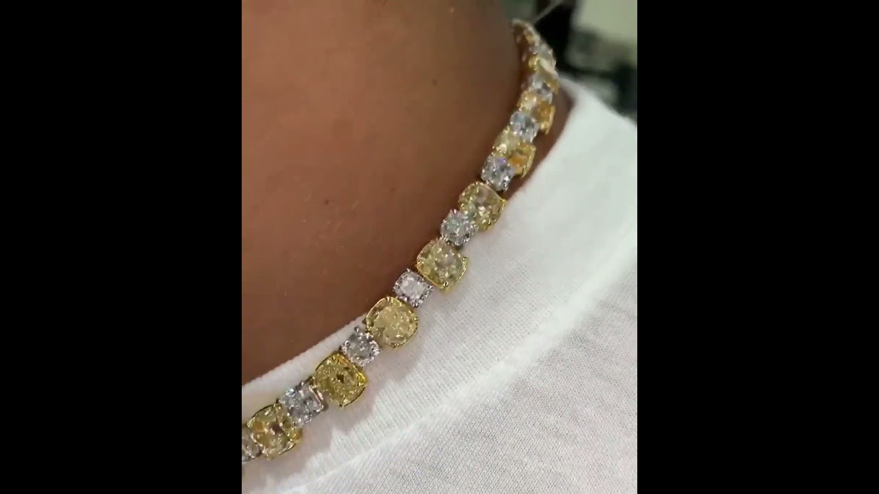 58ct Cushion Cut Yellow & White Sapphire Men's Yellow Gold Choker Necklace