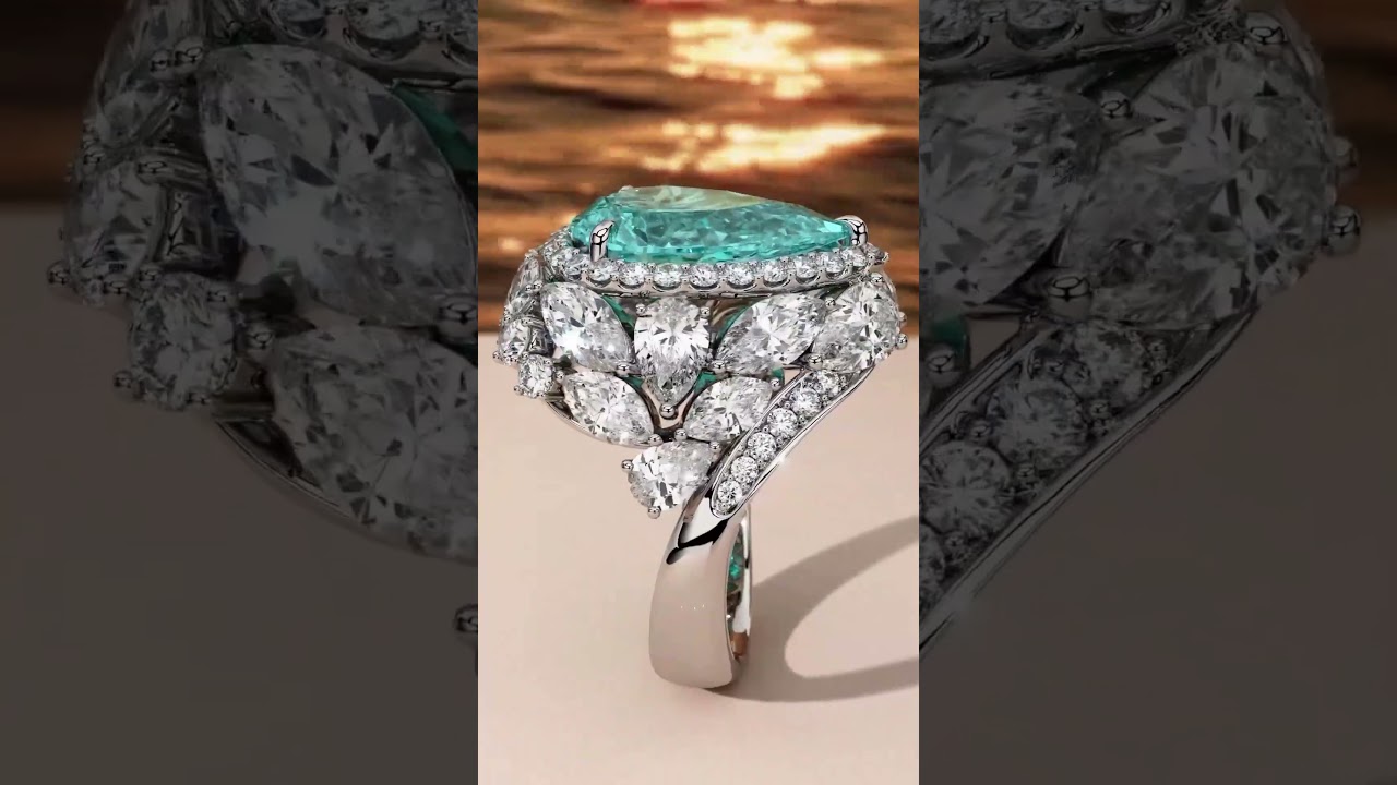 7ct Pear Cut Paraiba Tourmaline White Sapphire Halo Pave Handmade Ring
