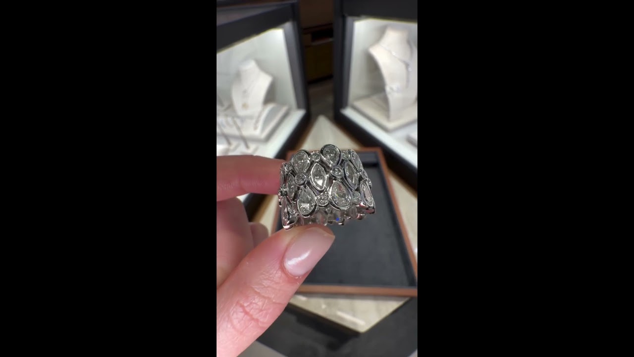 Multi-Cut Zircon Flower Design Wide Band Ring